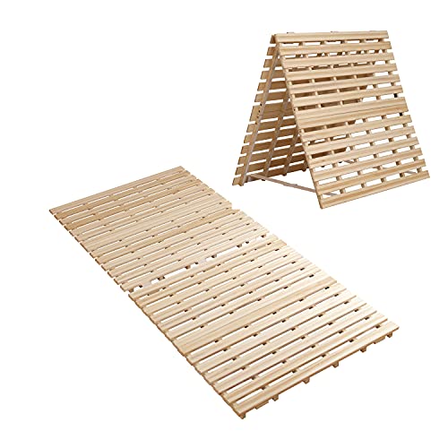「どうしてもベッドマットレスを床置きしたい…」という場合に最適なのが、上記画像のような「すのこ」です。ベッドフレームではないためスペースを取ることなく、費用も抑えることができます。底面がすのこ状のため空気が通りやすく、さらに使わないときはコンパクトに二つ折りにして通気が可能。通気性が良いので、カビ対策だけでなく、蒸し暑い夏でも快適な睡眠を確保できます。